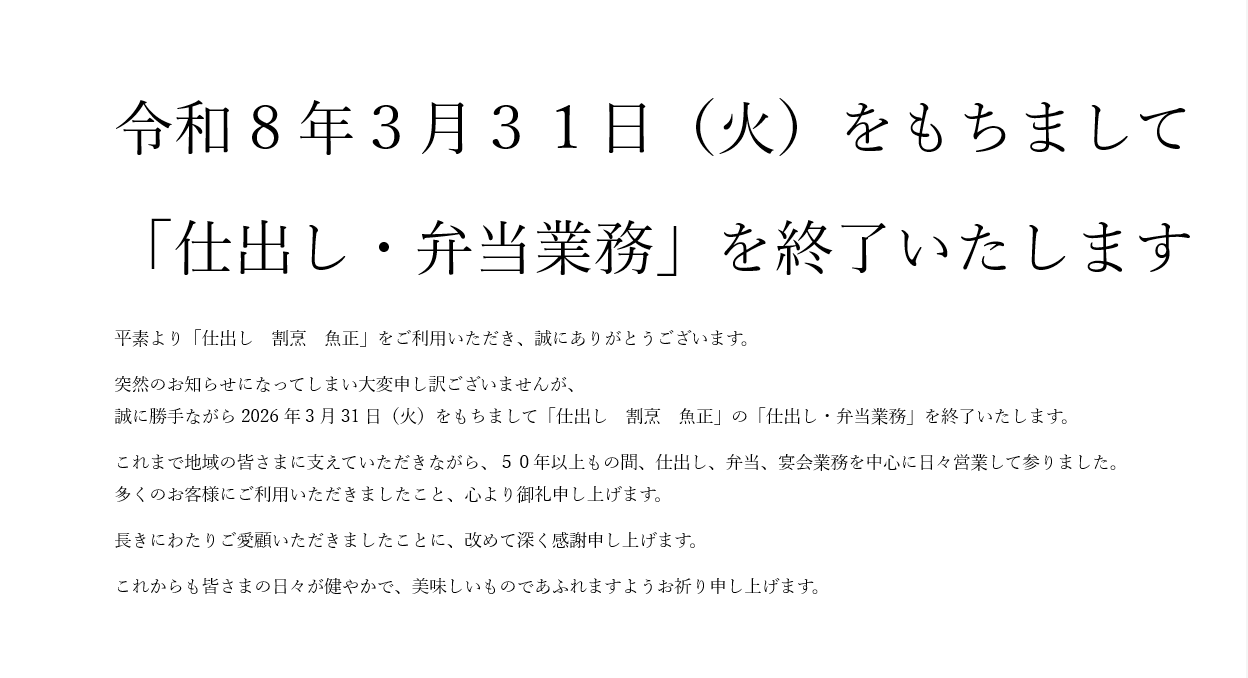 慶事、ご法要、仕出し料理のご予約は、倉敷市平田の「魚正」まで。